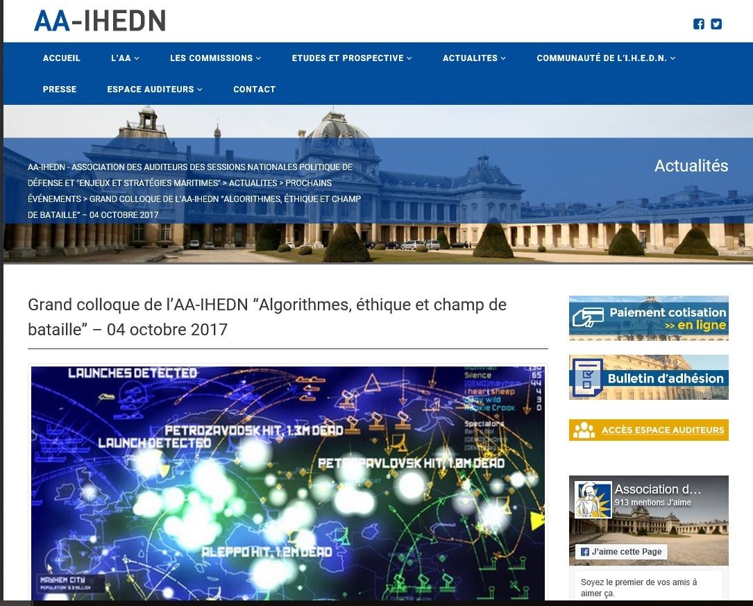 Le thème de ce Grand Colloque IHEDN est cette année « Algorithmes, éthique et Champ de bataille ».